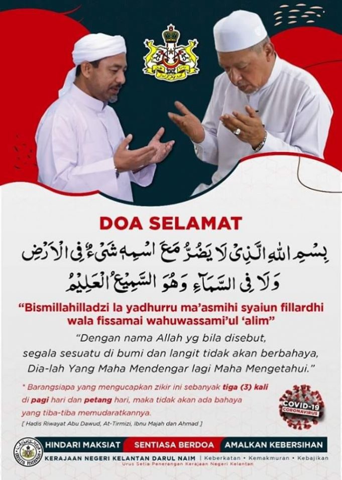 Justeru pada musim wabak Covid-19 ini, memang sangat disaran untuk dibaca doa/wirid ini pagi dan petang, setiap hari.
