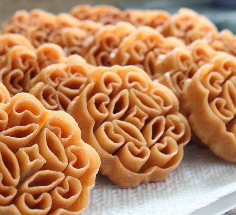 Kuih tiga nama, ada orang menggelarnya kuih goyang, ada panggil kuih ros dan ada juga sebut kuih sarang lebah. Kenapa entah sampai ada tiga nama.